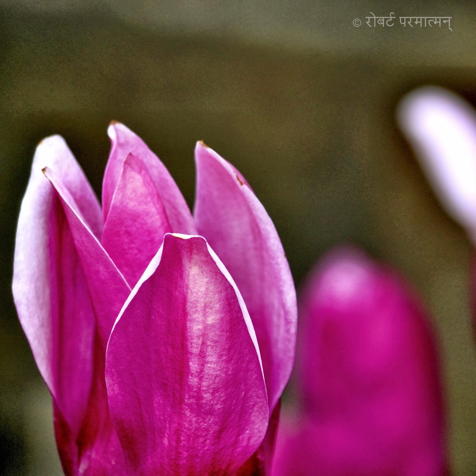 I was mostly enthralled with the frozen dew on these delicate flowers surrounded by cherry blossom petals that had fallen the night before.