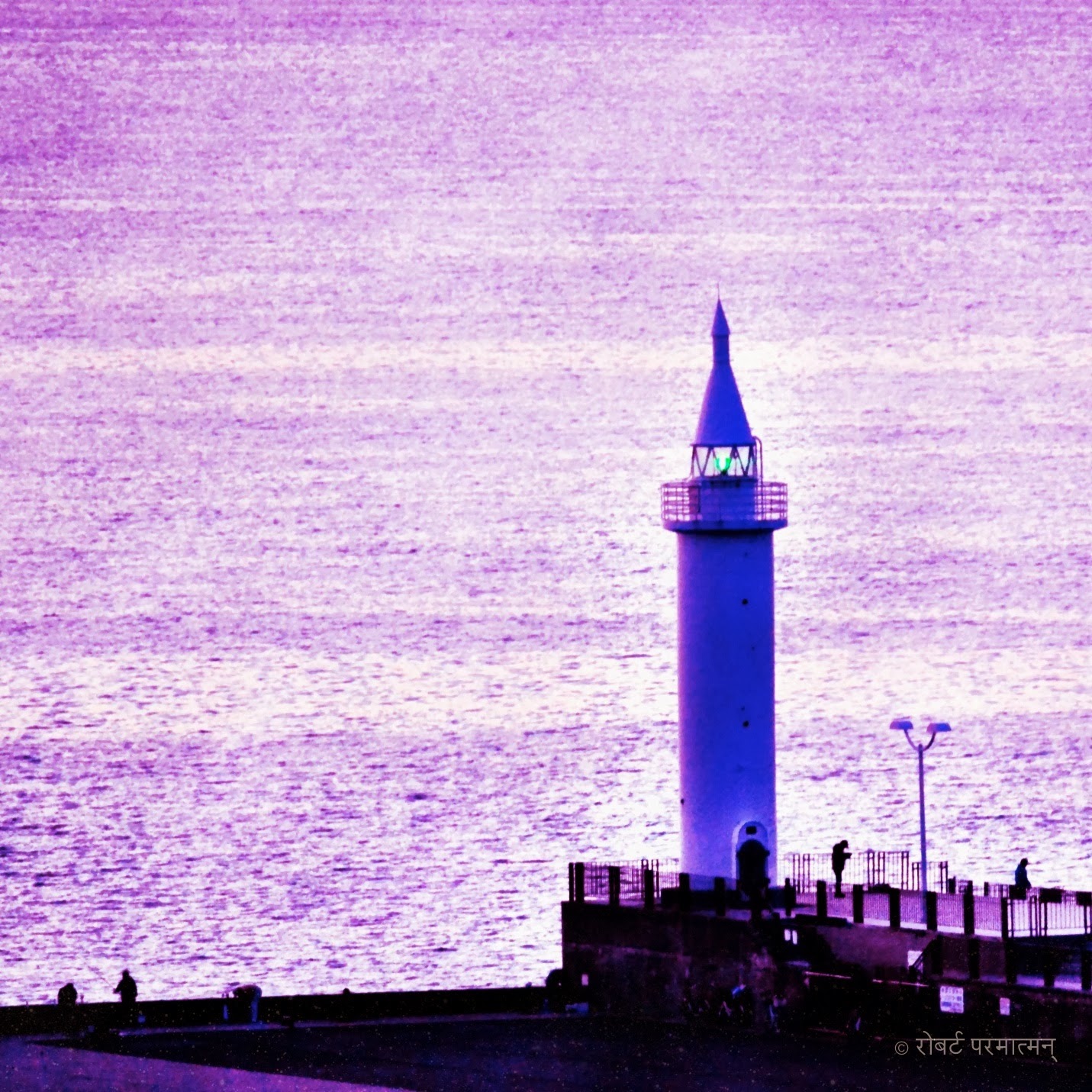 On the eastern side of the island, we can see a boat harbor, a small lighthouse, the other side of Tokyo Bay, and the Pacific Ocean.