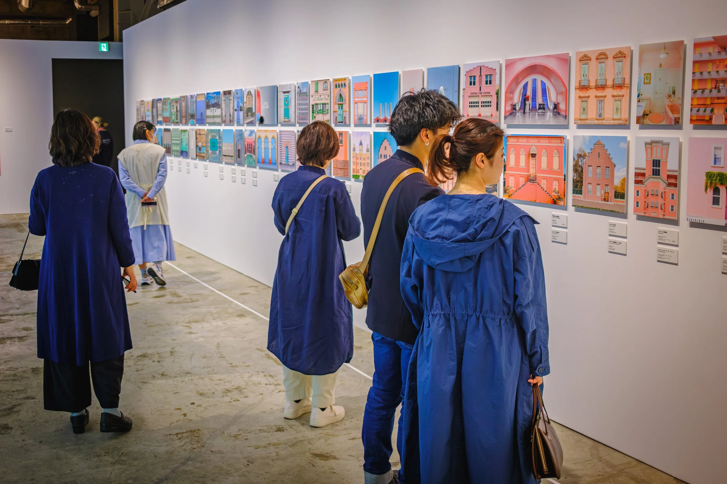 In this cropped shot, I captured a unique scene where every visitor was donning a shade of blue, which would have further elevated the scene if the walls had been painted in a soft shade of pink, evoking a distinctive Wes Anderson-esque atmosphere.
