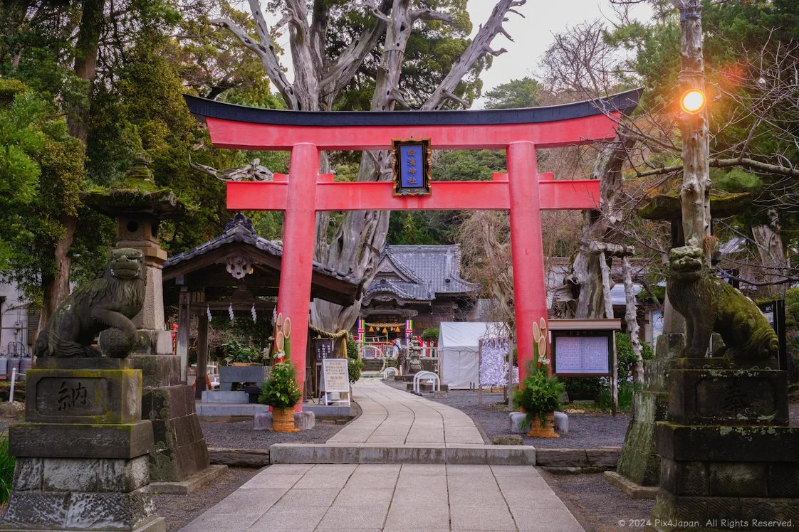 Step into the 2,400-year-history of Ikonahime-no-Mikoto Shrine, commonly known as Shirahama Shrine, where time seems to have left its mark on the weathered tiles and wooden elements of the shrine. As you enter the sacred grounds, the sacred objects lining the walkway to the shrine are a testament of the shrine’s history as it stands as the oldest shrine on the Izu Peninsula. The worship hall the shrine complex is not just a structure; it's a living testament to resilience, having weathered the onslaught of annual tropical storms and salty winds from the nearby Shirahama Beach.